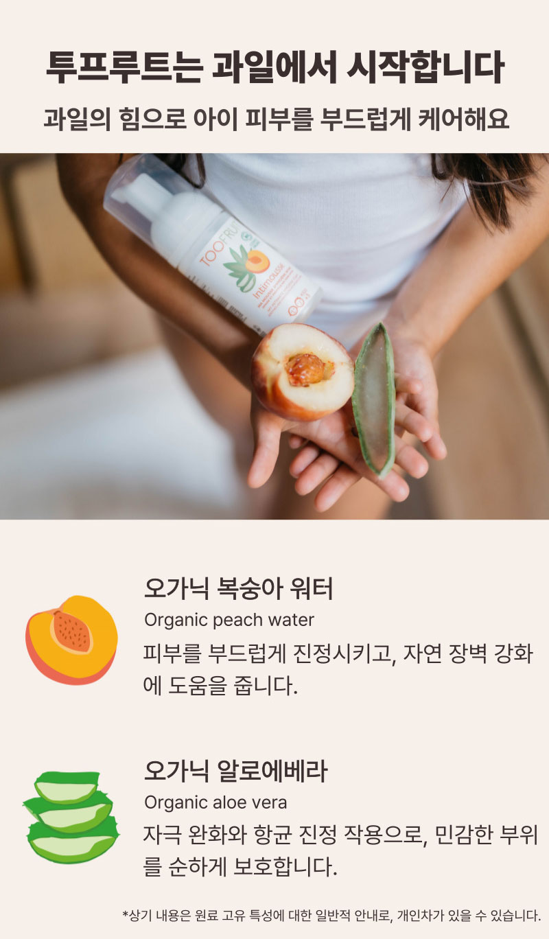정제수, 글리세린, 코코-글루코사이드, 복숭아수, 소듐코코일글루타메이트, 알파-글루칸올리고사카라이드, 글루코노락톤, 소듐벤조에이트, 글리세릴올리에이트, 시트릭애씨드, 향료, 알지닌, 알로에베라잎즙가루, 포타슘솔베이트, 하이드롤라이즈드스위트아몬드단백질, 류코노스톡/무발효여과물, 토코페롤, 하이드로제네이티드식물성글리세라이즈시트레이트